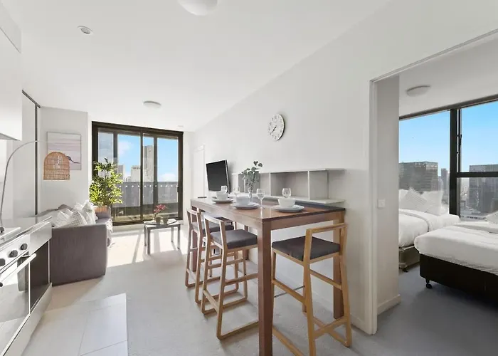 Appartement Modern 2Br On Collins Skyline Views & Parking de 60 m^2 est à moins de 5 minutes à pied d'Aquarium de Melbourne et séduit les clients avec une piscine couverte. L'appartement se trouve dans la localité de "central des affaires de Melbourne" et offre un accès à la Tour Euréka, qui se trouve à moins de 8 minutes à pied.